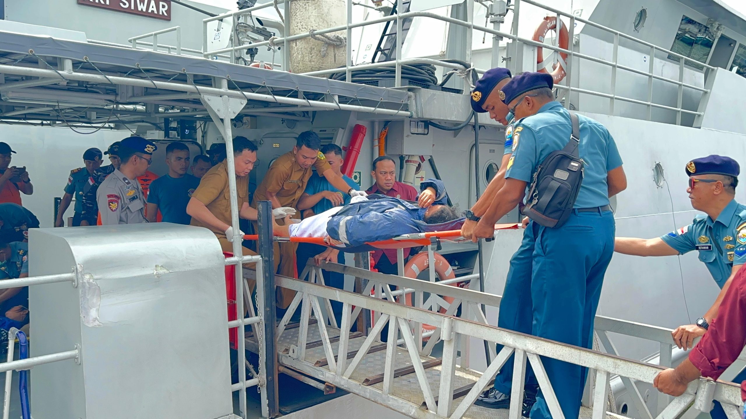 Setelah 6 korban selamat dapat di evakuasi ke KRI Siwar-646, kemudian di bawa menuju Pangkalan TNI AL Tg Balai Karimun guna dilakukan pemeriksaan medis. Hasil pemeriksaan medis oleh Tim dokter Balai Pengobatan Lanal TBK, 2 orang korban harus dilarikan ke RSUD Moh Sani Kab.Karimun karena mengalami luka serius.