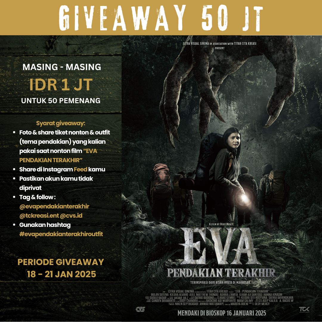 Sebagai bentuk apresiasi kepada penonton, berikut ini adalah Program Give Away bagi penonton film Eva Pendakian Terakhir.