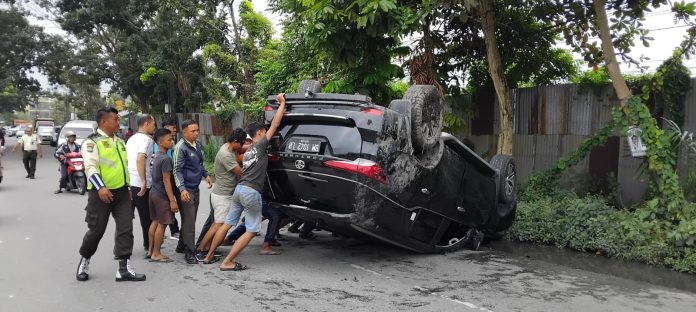 Kendaraan roda empat itu terguling hingga mengakibatkan pengendara mengalami luka dan harus dilarikan ke rumah sakit.