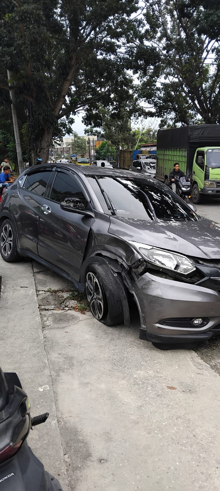 “Honda CRV datang dari arah Alam Mayang menuju Harapan Raya. Sedangkan Fortuner dari arah berlawanan. Laka terjadi tepat di tikungan depan Bengkel Agung Toyota, saat CRV hendak menyalip mobil yang ada di depannya,” ujar seorang saksi mata di lokasi kejadian.