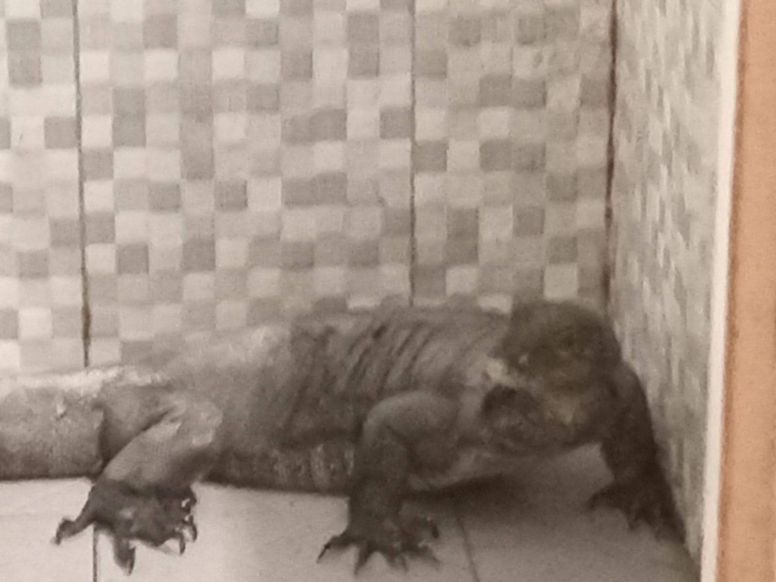 Batam, Suaraanalisa.com– Seekor binatang melata jenis Biawak masuk ke kamar mandi milik warga Perumahan Frensiana Garden, Jumat (21/3/2025) sekitar pukul 13.30 WIB.