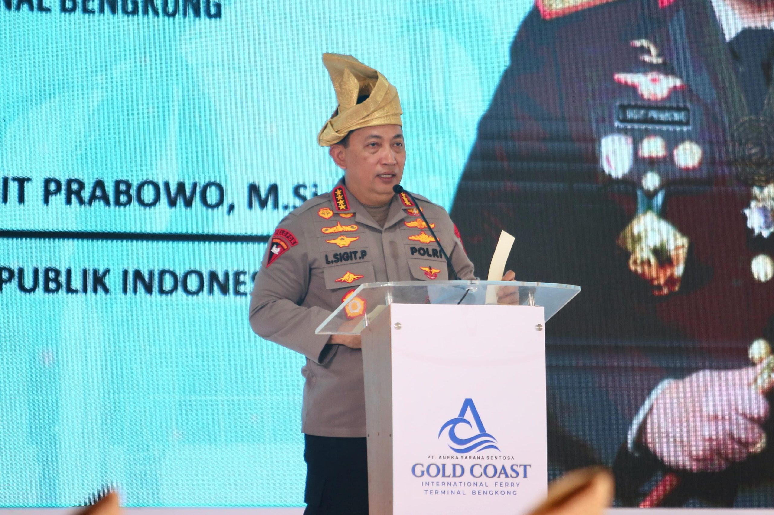 Hal ini diungkapkan Kapolri Jenderal Polisi Drs. Listyo Sigit Prabowo saat meresmikan Pelabuhan Ferry Internasional Gold Coast Batam bersama Menteri Koordinator Bidang Infrastruktur dan Pembangunan Kewilayahan Agus Harimurti Yudhoyono di Kota Batam, Provinsi Kepulauan Riau, Senin (15/4/2025).