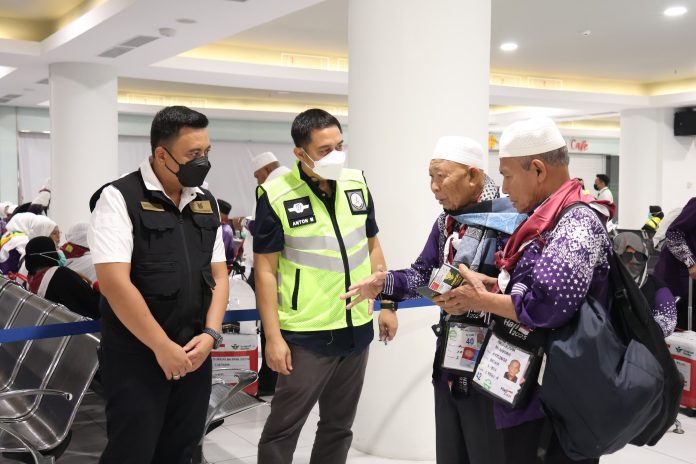 Sebanyak 443 jemaah haji tiba dengan selamat setelah menunaikan ibadah haji di Tanah Suci. Rombongan jemaah tergabung dalam kloter pertama, dan mendarat sekitar pukul 21.45 WIB