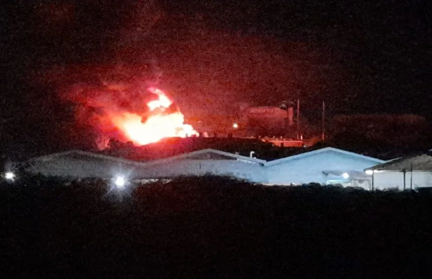 Suara dentuman kencang terdengar dari lokasi material disusul kemunculan kobaran api yang dalam sekejap membumbung tinggi, Senin 23 Juni 2025 sekitar pukul 21.00 WIB.