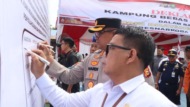 Sebanyak 79 desa di 12 kota dan kabupaten se-Provinsi Riau mendeklarasikan ‘Kampung Bebas Narkoba’.Kegiatan deklarasi ini digelar secara serentak melalui Zoom Meeting, pada Rabu (25/6/2025) yang dipimpin Kapolda Riau Irjen Herry Heryawan, di Kampung Dalam, Kecamatan Senapelan, Kota Pekanbaru.