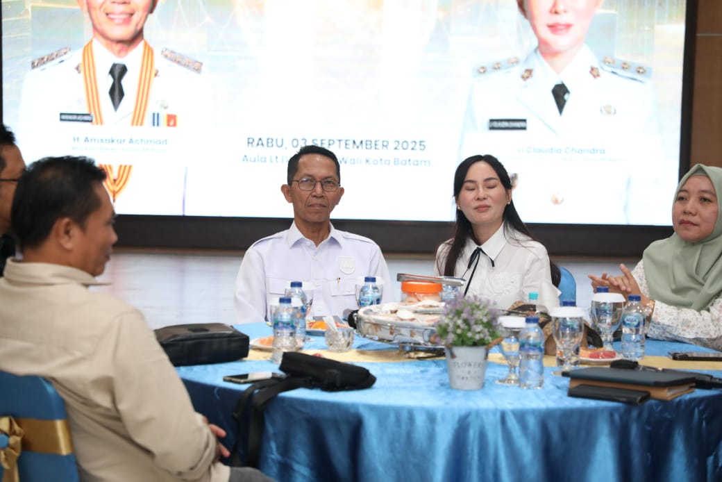 Batam, Suaraanalisa.com – Wali Kota Batam, Amsakar Achmad, didampingi Wakil Wali Kota Li Claudia Chandra, bersilaturahmi dengan insan pers di Ruang Rapat Lantai IV Kantor Wali Kota Batam, Rabu (3/9/2025).