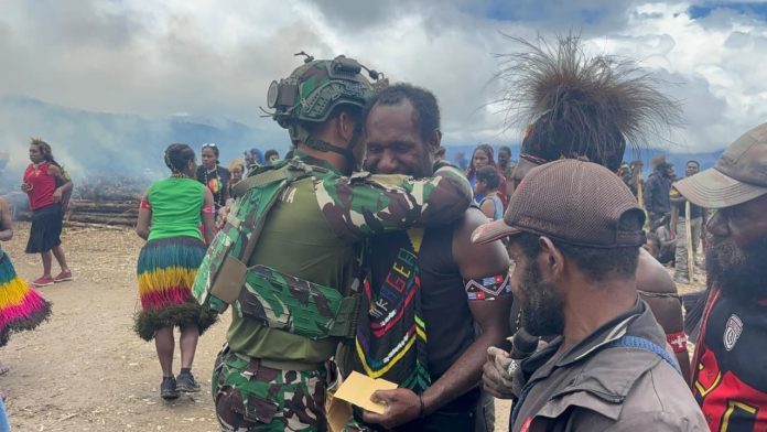 Puncak Jaya, Suaraanalisa.com – Satgas Pamtas RI-PNG Kewilayah Yonif 136/Tuah Sakti mengikuti tradisi bakar batu bersama masyarakat setempat di Gereja Induk Nume, Kabupaten Puncak Jaya, Papua, Kamis (19/2/2026).